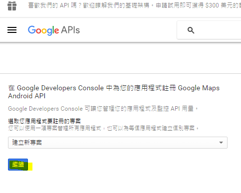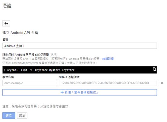 輸入完套件名稱與SHA-1憑證指紋後,按下建立,即完成API申請。