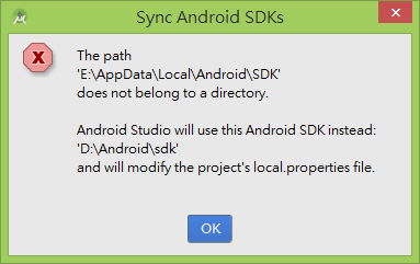 6.出現此錯誤正常,每人SDK放置位置不同,OK即可