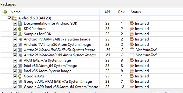 就代表SDK沒安裝好,我以API23為例,我是全裝
