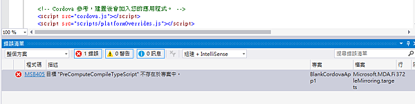 錯誤 MSB4057 目標 "PreComputeCompileTypeScript" 不存在於專案中。