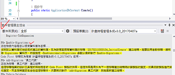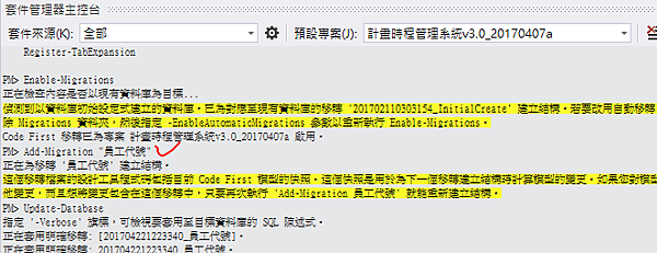Step 1: 選擇工具->NuGet封裝管理員->套件管理器主控台,輸入“Enable-Migrations”
