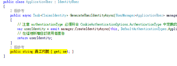 Step 2: 資料夾 Models/IdentityModels.cs 即可加上自己的欄位名稱